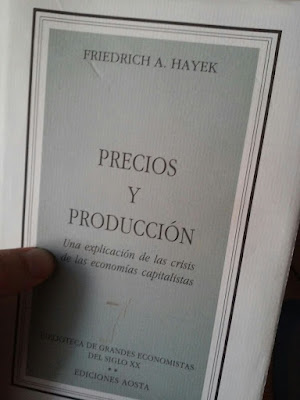 Hayek; "A pesar de que los consumidores dispongan de una mayor cantidad de dinero, nunca podrán consumir más que la oferta corriente de bienes de consumo"...;"... la proporción en la que los empresarios están dividiendo sus recursos entre la producción para un futuro inmediato y el futuro mas distante, está siendo diferente a la proporción en la que los consumidores desean dividir su renta entre la provisión para el consumo inmediato (bienes de consumo corrientes) y el consumo futuro".